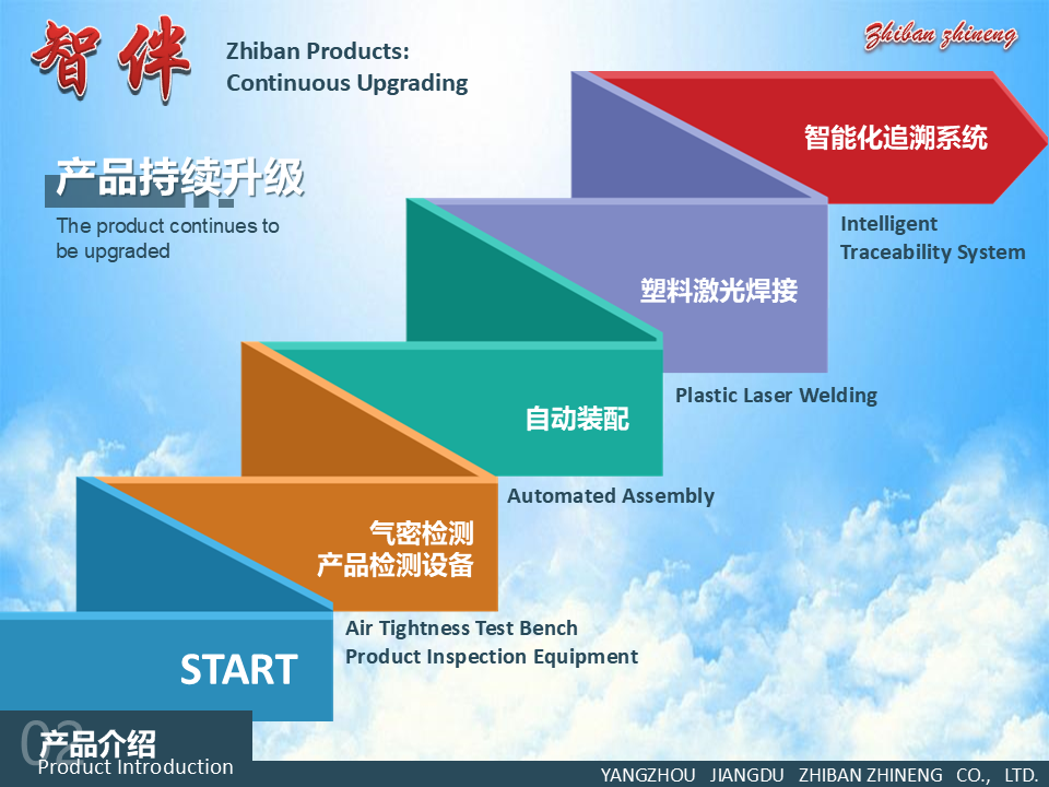 公司主营产品气密性检测、装配工作站、零件检测设备、智能化成套设备。多年的发展历程,智伴公司专注非标设备研发制造,凭借深厚技术积累与创新精神从前期方案设计,到中期加工制造,再到后期安装调试与售后维护,提供:一站式服务,以专业、高效、贴心赢得客户信赖。